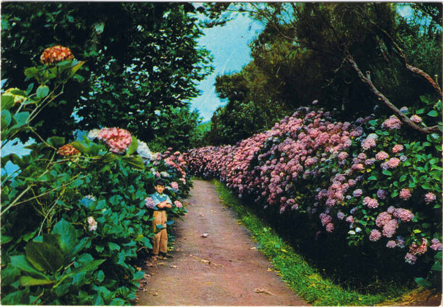 MAD 58/5 - MADEIRA. Hortênsias nas Queimadas - Ed. GM Francisco Ribeiro - Rua Nova de S. Pedro, 27 telef. 23930 FUNCHAL - MADEIRA - SD - Dim. 14,7x10,1 cm - Col. Manuel e Fátima Bóia (1975).