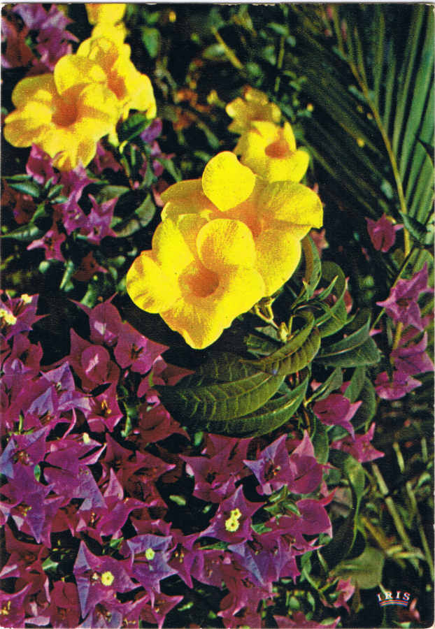 MD 356 - MADEIRA Alamanda e Buganvílea - Ed. Francisco Ribeiro - Rua Nova de S. Pedro, 27 telef. 23930 FUNCHAL - MADEIRA - SD - Dim. 10,4x14,9 cm - Col. Manuel e Fátima Bóia (1975).