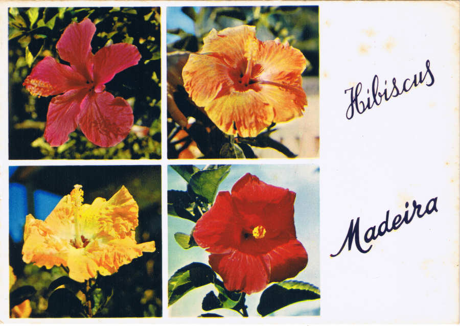 MD 360 - MADEIRA Hibiscus - Cardeal - Ed. Francisco Ribeiro - Rua Nova de S. Pedro, 27 telef.23930 FUNCHAL - MADEIRA - SD - Dim. 14,8x10,4 cm - Col. Manuel e Fátima Bóia (1975).