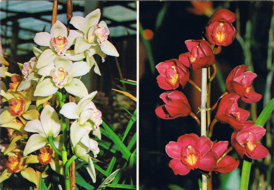MD. 5 - MADEIRA. Orquidea: Cymbidium Louwamo - Cypipedilum insigne - Sterilizia regina - Ed. Hans Huber KG Agente no Funchal: Francisco Ribeiro, Rua Nova de S. Pedro, telef. 23930 - SD - Dim. 14,8x10,4 cm - Col. Manuel e Fátima Bóia (1975).