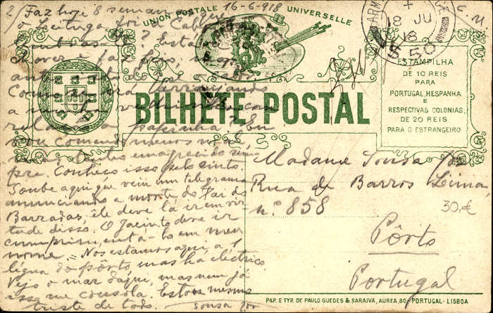36. N.º 16. ILHAVO. Carregando a rede na Costa Nova. Ed. Papelaria e tipografia de Paulo Guedes & Saraiva, Áurea, 80 - Portugal, Lisboa, 1889, Dim. 83x138 mm, Circulado em 18-6-1918, Col. E. Semedo. Verso