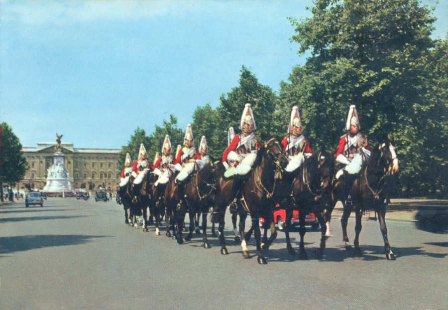 A7 - London, The Life Guards on parade - Reedição de Valentine & Suns em 1951 - Dim. 13,9x8,8 cm - Col. Amílcar Monge da Silva (c. 1910)