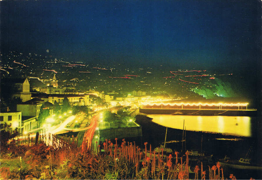 N.º MD 193 - FUNCHAL (Madeira) A noite de 31 de Dezembro - Ed. Hans Huber KG Agente no Funchal: Francisco Ribeiro, Rua Nova de S. Pedro, telef. 23930 - SD - Dim. 14,7x10,4 cm. - Col. Manuel e Fátima Bóia (1975).