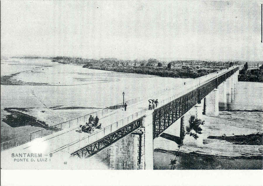 27. Santarém. Ponte sobre o Tejo e linha do Caminho de Ferro.