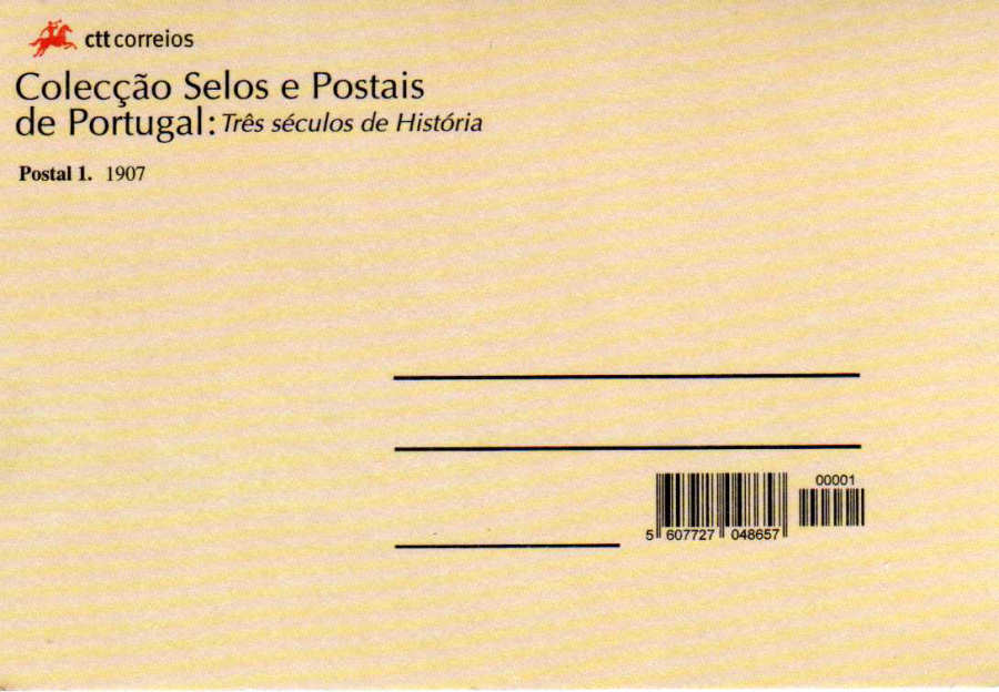 Postal 01. 1907 Colecção Selos e Postais de Portugal. Três séculos de História. Dim. 14x9,7cm. Col. Carlos Alberto Silva Sousa.