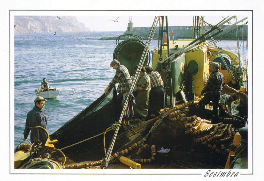 SN - Colecção Paisagens e Costumes - Concelho de Sesimbra - Faina na Traineira - Ed.(02)- JOSÉ ARSÉNIO 1994 TELEF. 268 63 43 Sesimbra - Portugal FOTO JOSÉ ARSÉNIO - Dim. 15x10,5 cm - Col. Fátima Bóia