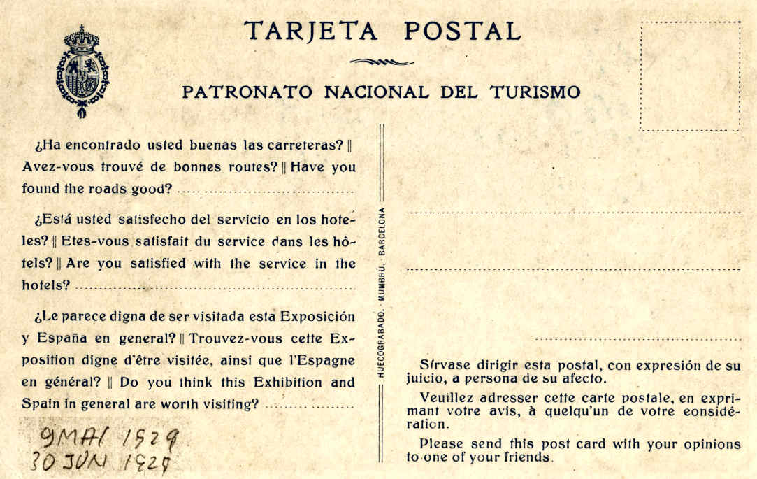 43. SN - Sevilha, Exposición Ibero-Americana, Torre da Praça - Ed. ??? - Dim. ??,?x??,? cm - Col. Amílcar Monge da Silva.   (verso)