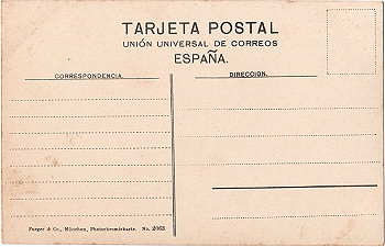 45.Coleccion Tomas Sanz, Sevilla Nº.3. Casa de Pilatos desde la Azoteia. Edição Purger & Co., Munchen, Photochromierkarte, nº 2492, cerca de 1905. 138x90 mm. Colecção Amílcar Monge. Verso