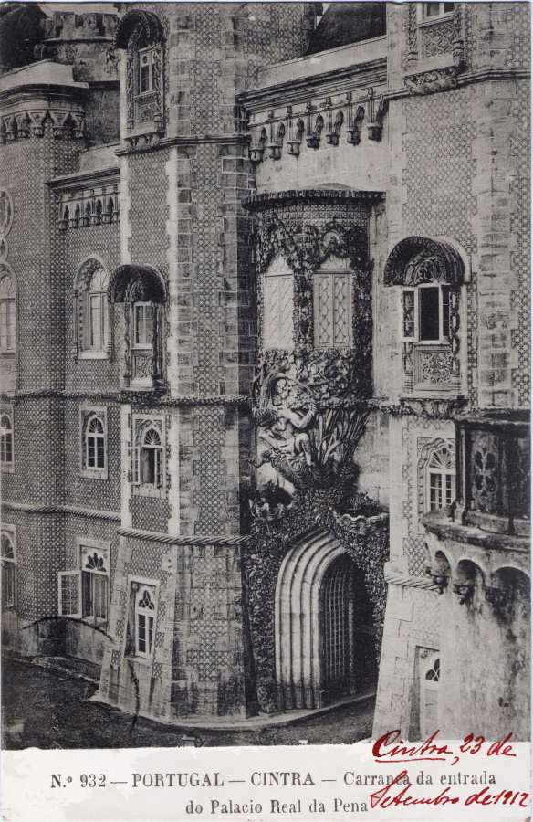 Nº 932 - Carranca da entrada do Palacio Real da Pena - Edição Martins & Silva, Pç Luís de Camões 35, Lisboa - Dim. 141x91 mm - Carimbo Postal 08OUT1912 - Col. A. Monge da Silva (anterior a 1910)