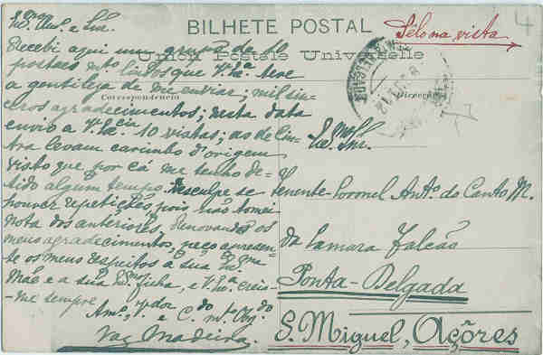 Postais 45 a 70 - Logo após a implantação da Republica foram alteradas as leis postais e os "Bilhetes Postais", passando os "Impressos" a pagar menos. Foi então riscada a palavra "Bilhete Postal" e manuscrito "Impresso", o que identifica estes postais como sendo de 1910 ou anteriores.