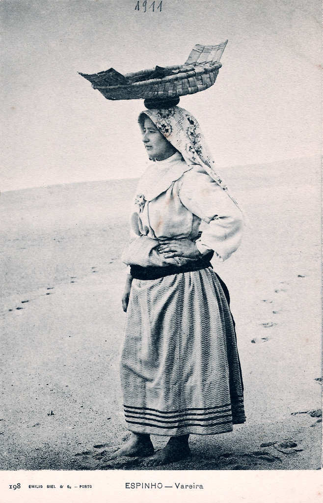 Vareira da praia de Espinho nos seus trajes típicos cerca de 1910. |