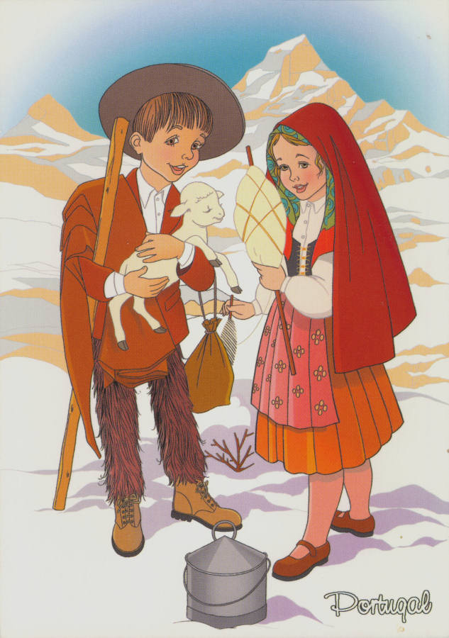 Espinho em 1900 mostrando duas raparigas nos trajes da época. |