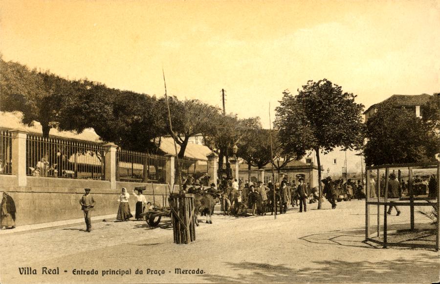 S/N - Villa Real-Entrada principal da praça. Mercado - Edição da Casa M. J. David Guerra, Villa Real - S/D - Dimensões: 13,9x9 cm. - Col. Aurélio Dinis Marta.