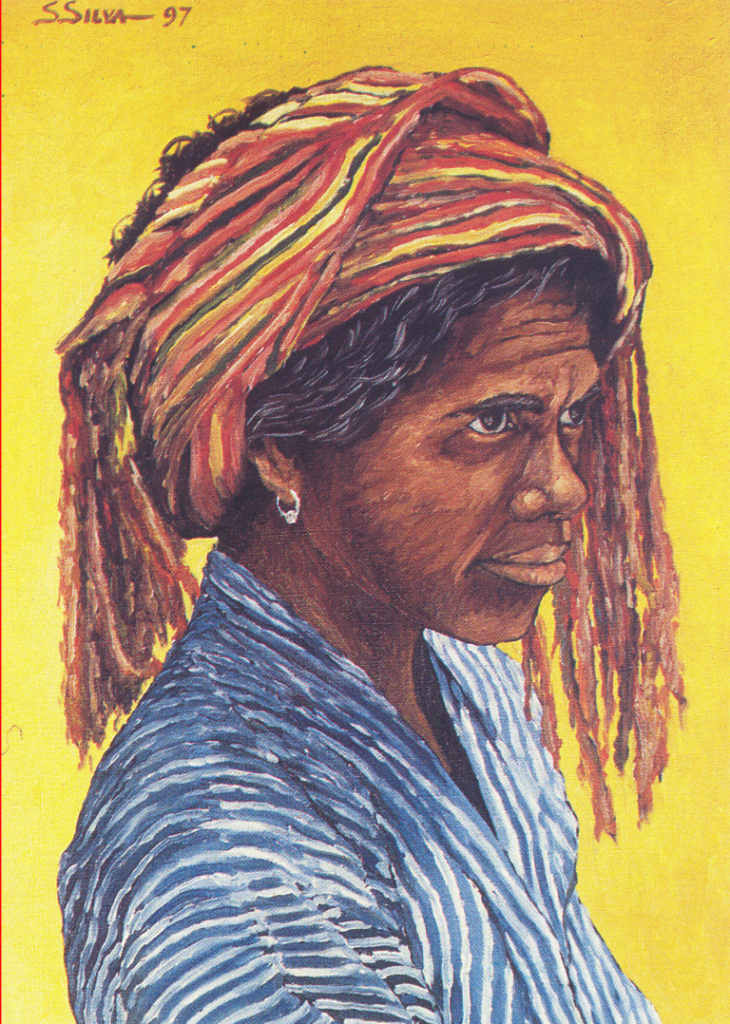 Dançarina timorense com Babadok. Óleo de Sebastião Silva - Edição