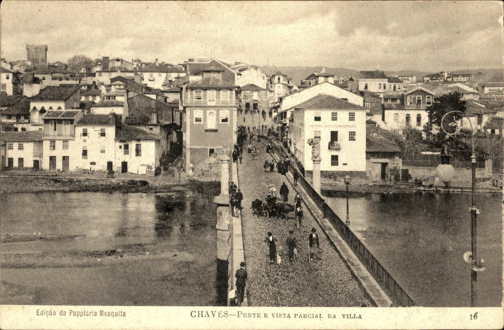 19. Nº 16. Chaves. Ponte e vista parcial. Edição da Papelaria Mesquita. SD. Dim. 92x141 mm. Col. E. Semedo   20. Nº 243. Chaves. Portugal. Praça do Arrabalde e Rua de Stº António. Edição LIFER, Porto. SD. Dim. 102x149 mm. Col. E. Semedo