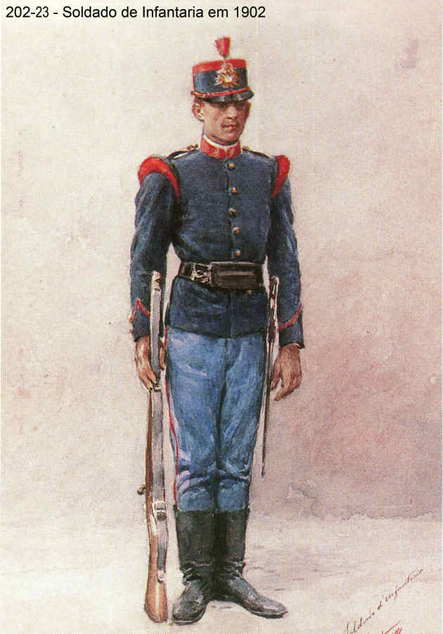 Nº 202-23 - Soldado de Infantaria em 1902 - Aguarela do Cor. Ribeiro Artur - Edição Jornal do Exército, 1987 - Dim. 15x10,3 cm - Col. A. Monge da Silva