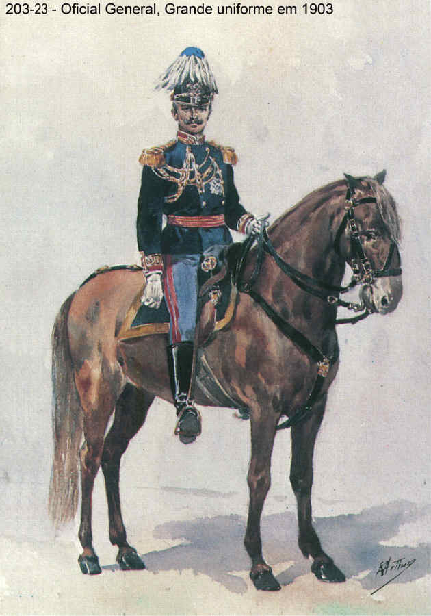 Nº 203-23 - Oficial General, Grande uniforme em 1903 - Aguarela do Cor. Ribeiro Artur - Edição Jornal do Exército, 1987 - Dim. 15x10,3 cm - Col. A. Monge da Silva
