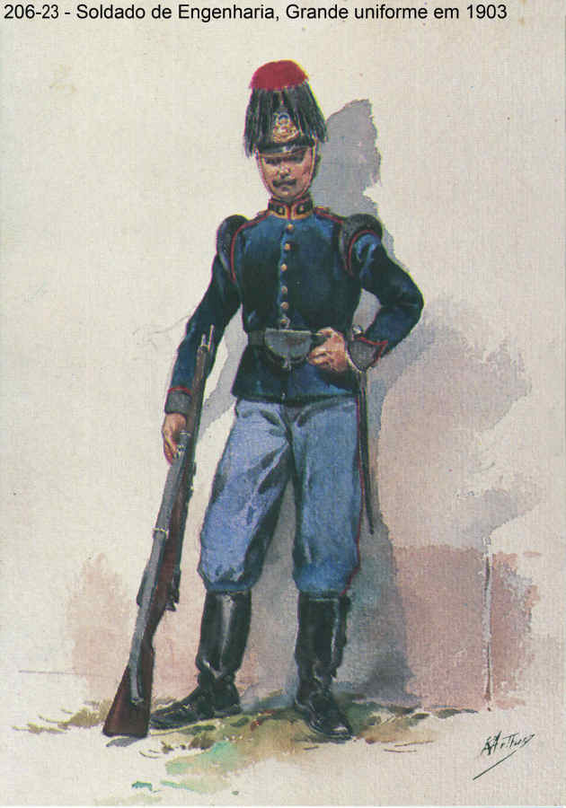Nº 206-23 - Soldado de Engenharia, Grande uniforme em 1903 - Aguarela do Cor. Ribeiro Artur - Edição Jornal do Exército, 1987 - Dim. 15x10,3 cm - Col. A. Monge da Silva