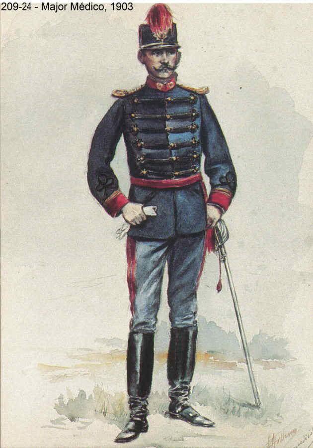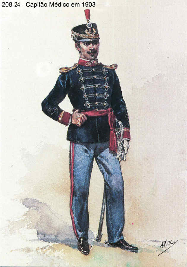 Nº 209-24 - Major Médico em 1903 - Aguarela do Cor. Ribeiro Artur - Edição Jornal do Exército, 1987 - Dim. 15x10,3 cm - Col. A. Monge da Silva.