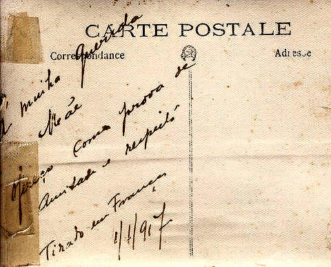 381. Postal do Alferes Manuel dos Santos Pimenta, enviado de  França em 1917. Col. M.J. Dias - VERSO