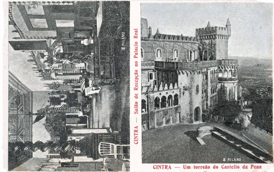 SN - Salão de Recepção ao Palacio Real e um torreão do Castello da Pena - Edição da Trinacria "B.T.", Lisboa - Dim. 140x88 mm - Col. A. Monge da Silva (anterior a 1910)