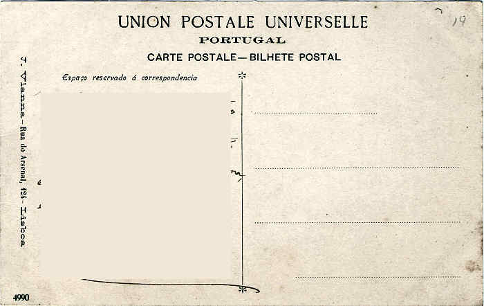 Nº 4990 - Lado Oriental - (papel de fotografia) - Edição J.Vianna, Rua do Arsenal, 124, Lisboa - Dim. 140x88 mm - Usado em 1910 - Col. A.Monge da Silva