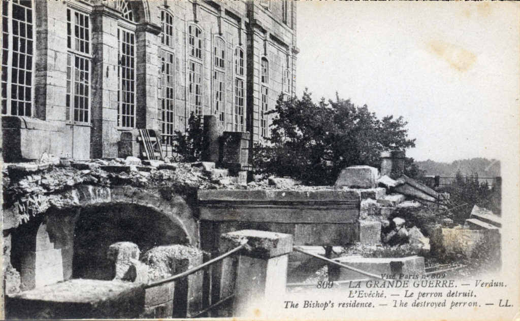 5 - La Grande Guerre. Verdun, L’Evêché - Le perron détruit