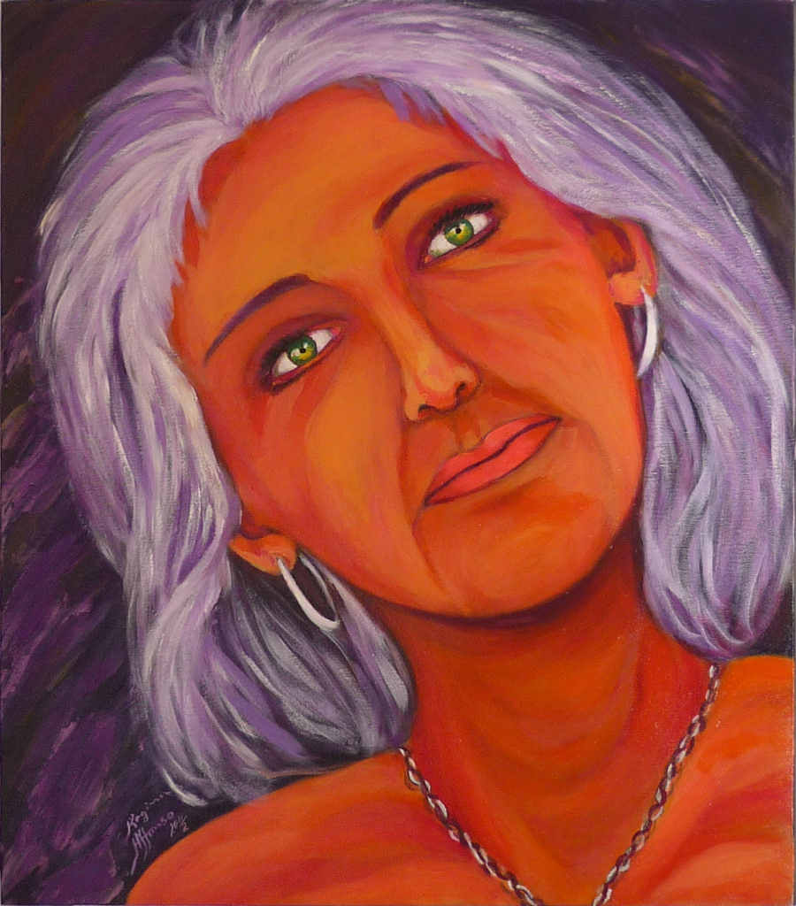 1. Santa Joana Princesa - Acrílico 80x60 cm.   2. Auto-retrato - Acrílico 75x65 cm. Col. particular.