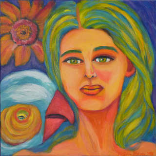 21.A menina e o papagaio II - acrílico 50x50 cm.
