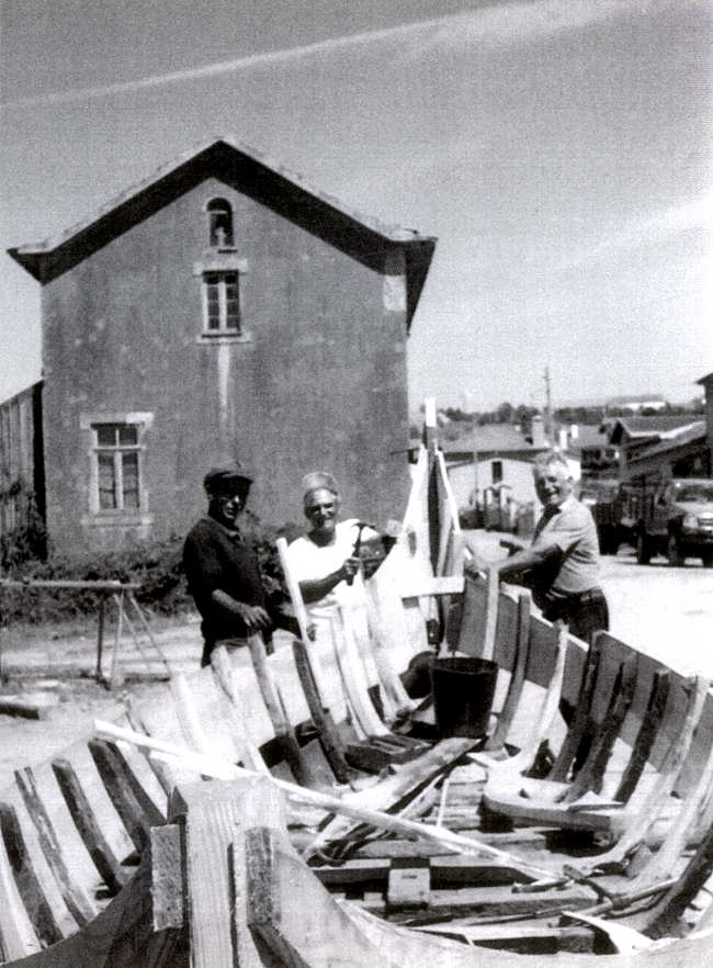 Esteiro de Salreu. Recuperação de uma bateira de ervagem. De camisa branca, o último dos Garridos. À sua