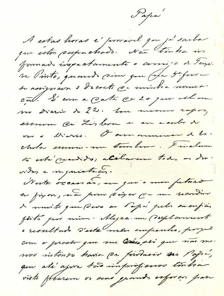 Fac-simile de uma carta de Júlio Dinis a seu pai, o Dr. José Joaquim Gomes Coelho