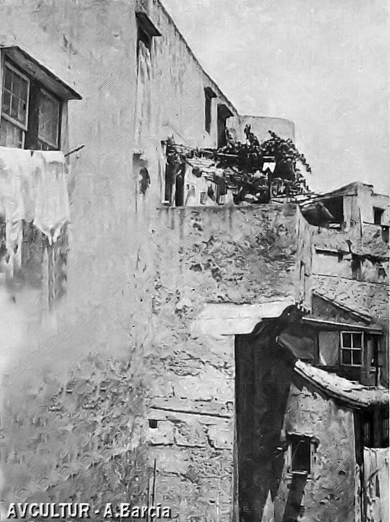 população densa, apinhada em estreitas vielas, no casario pequeno,