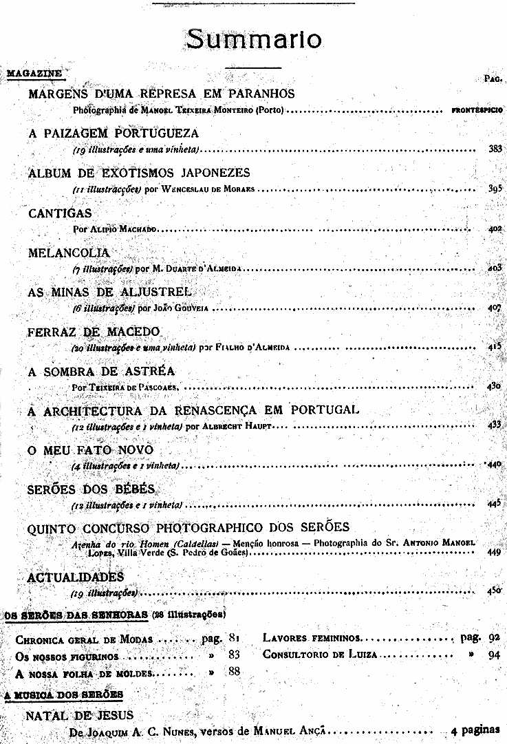 Livraria: Livraria Ferreira – Director: Henrique Lopes de Mendonça – Séde da Redacção e administração: Praça dos Restauradores, 27. – Composto e impresso na Typographia do Anuário Commercial, Praça dos Restauradores, 27.
