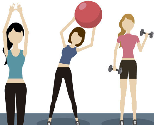 exercícios com o peso do corpo, elásticos, halteres ligeiros...