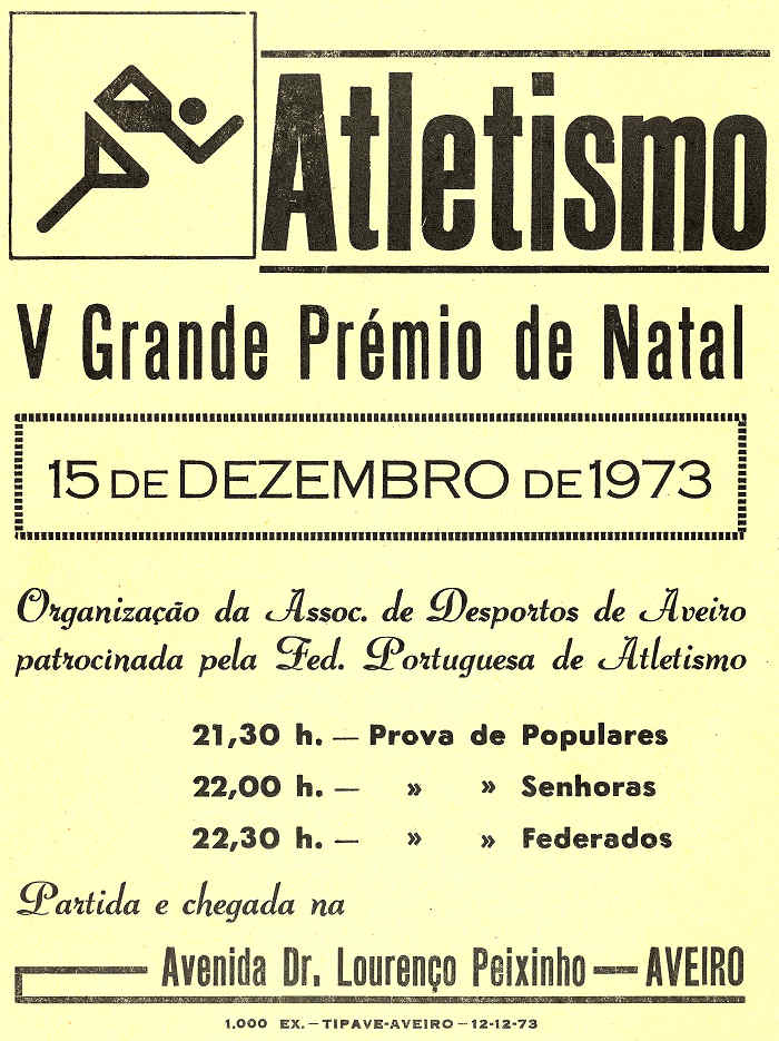 Para finalizar o ano, a Associação de Desportos realiza, em 15 de Dezembro, a 5ª edição do seu “Grande Prémio de Natal”, que desta feita servia de selecção para a “Volta ao Funchal”, outra grande prova de estrada que a Federação fazia disputar na época. Tornou a vencer o grande atleta Carlos Lopes, desta vez secundado por Aniceto Simões, em representação do Benfica. Este clube quebraria a hegemonia que o Sporting vinha demonstrando em anos anteriores, vencendo colectivamente com os seus atletas em 2º, 3º e 5º. Em senhoras, venceu Rosa Mota, ainda a representar o F. C. da Foz, com Olívia Elvas da Ovarense num brilhante 2º lugar, a pouca distância da que viria a ser a grande campeoníssima.
