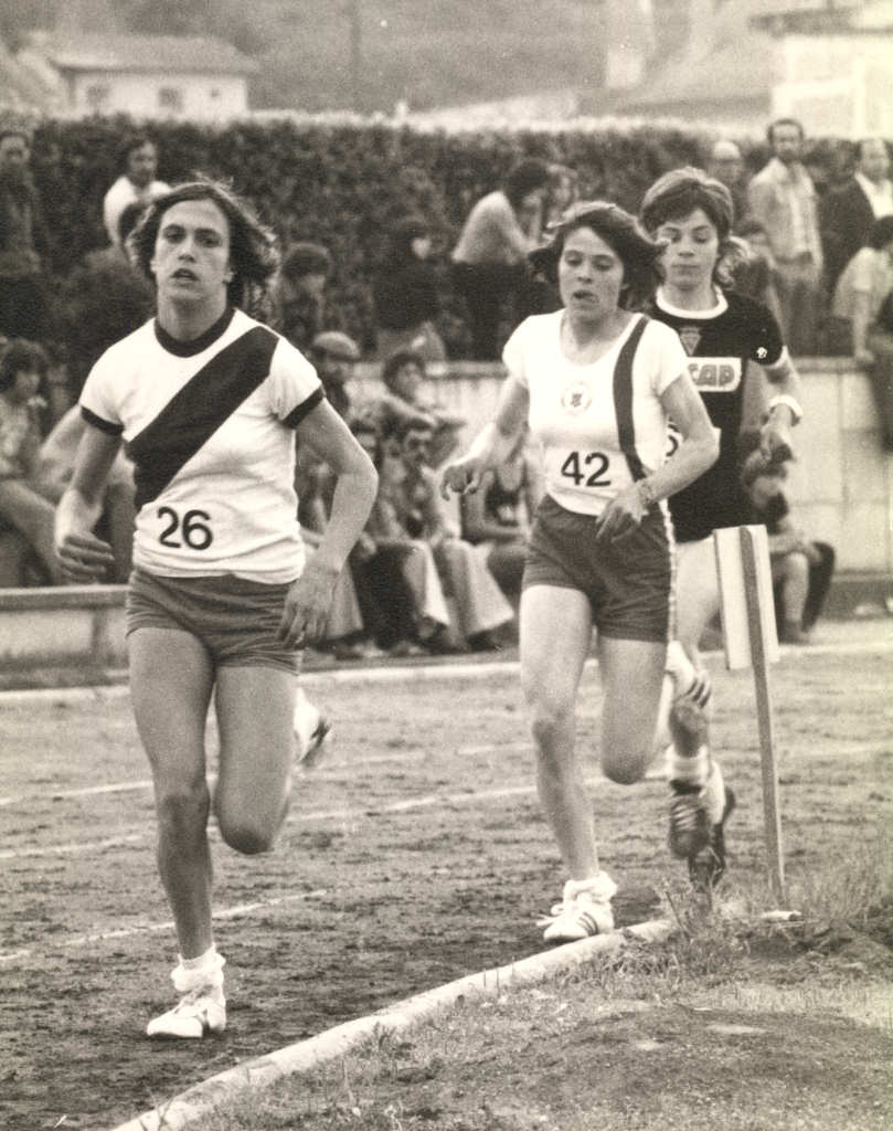 metros, onde fez o tempo de 27,4 s., logo atrás das melhores velocistas da altura, Conceição Moura, do Santa Clara, e Maria João