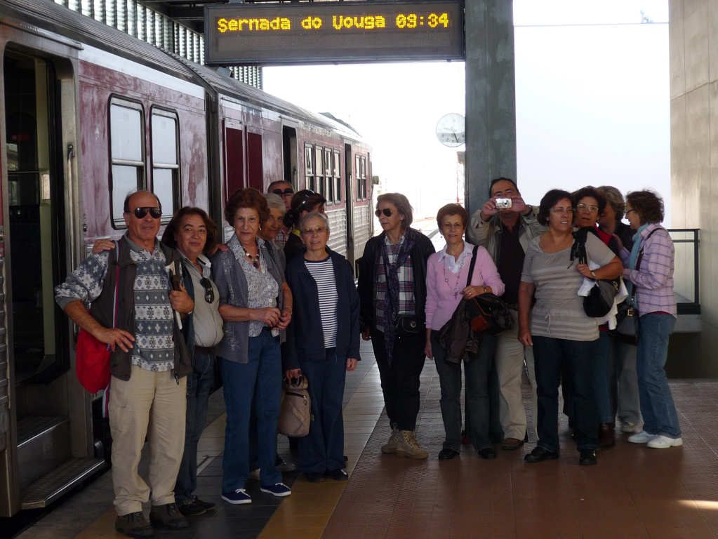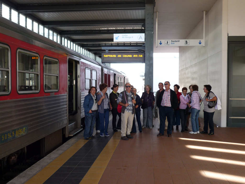 Na estação de Aveiro, antes da viagem.