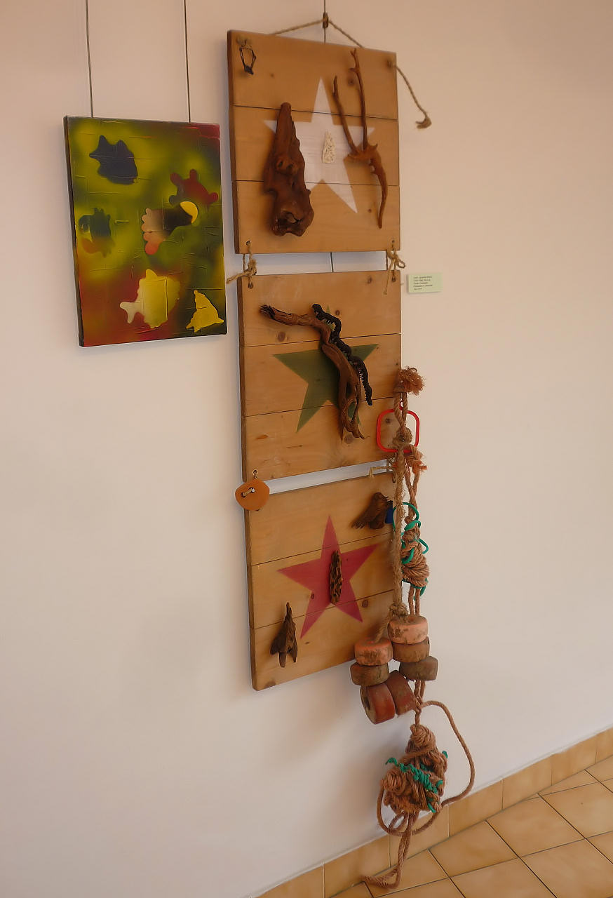 4.Tempo de dar Tempo ao Tempo. Instalação. 100x30 cm. 2018.   5.Praia, mar e etc. Instalação. 200x60 cm. 2019.   6. Snoopy: Não abandonem os meus amigos. Mista «Instalação». 80x38 cm. 2018