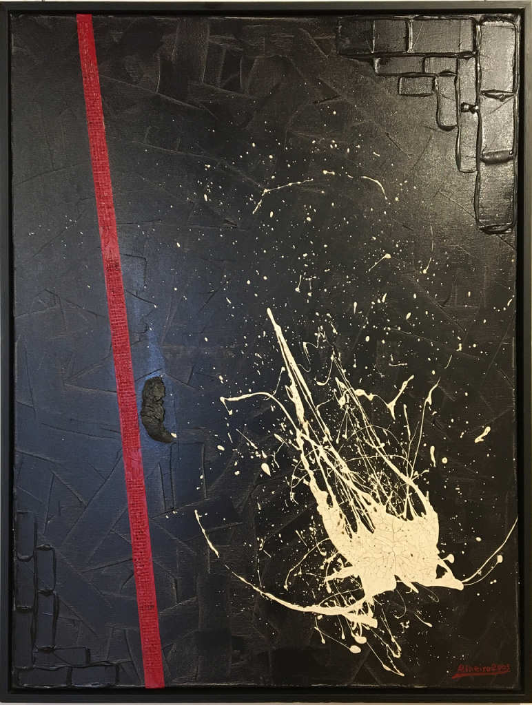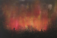 9. Os Gritos. Mista sobre tela. 80x120 cm. 2017. «Uma floresta tem milhares de árvores. Uma árvore dá milhões de fósforos. Um fósforo destrói uma floresta.