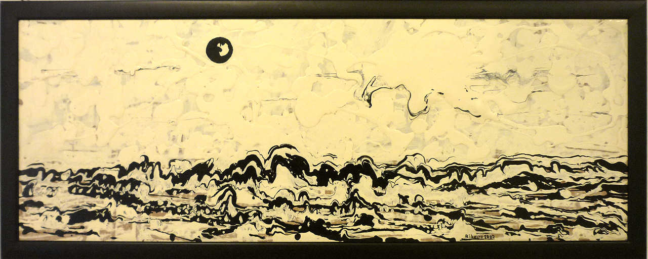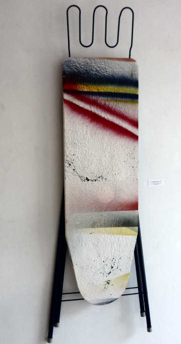 16. Lua Nova. Mista sobre tela. 80x80 cm. 2019.   16. Caminho do ferro. Instalação com tábua de passar a ferro. 130x50 cm. 2014.