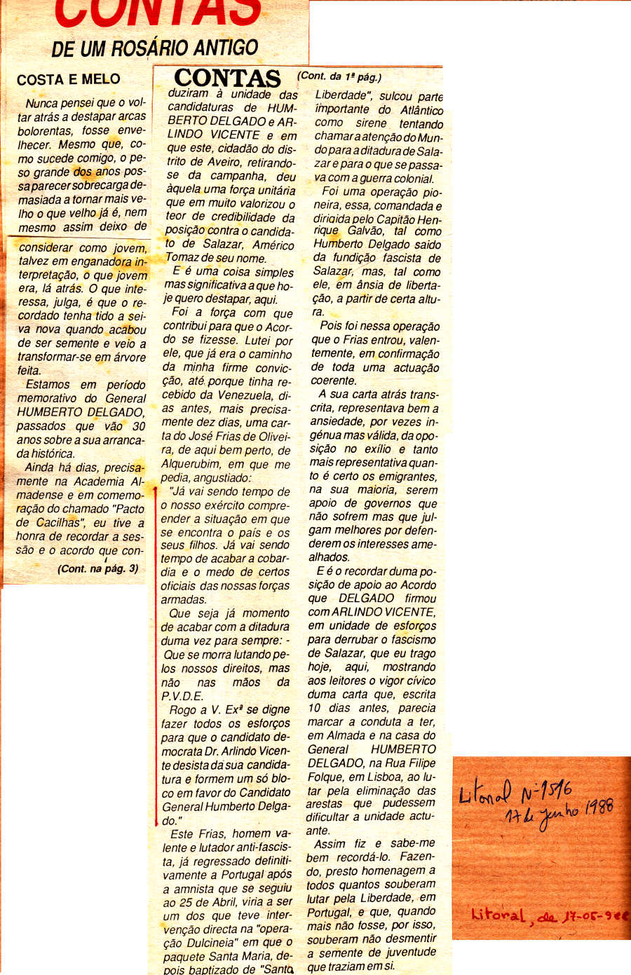 (Humberto Delgado e Arlindo Vicente), que conduziu à união das duas