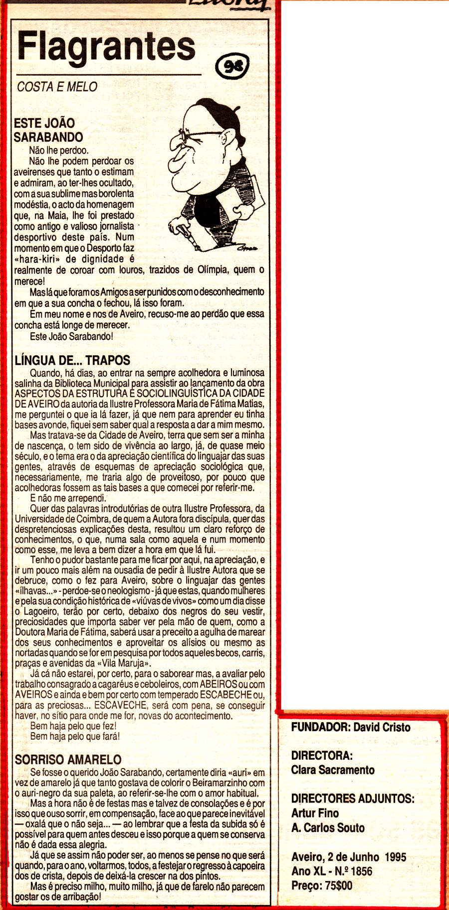 ao amigo João Sarabando, onde, em jeito de crítica, mas simpática,