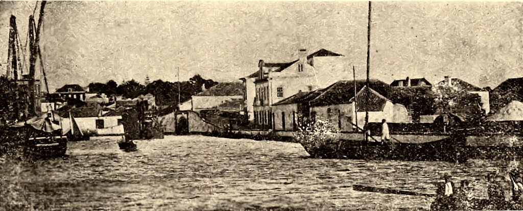 Canal das Pirâmides, junto à ponte da Dobadoira, e estrada para a Barra. Aspecto em 1910.– ///////