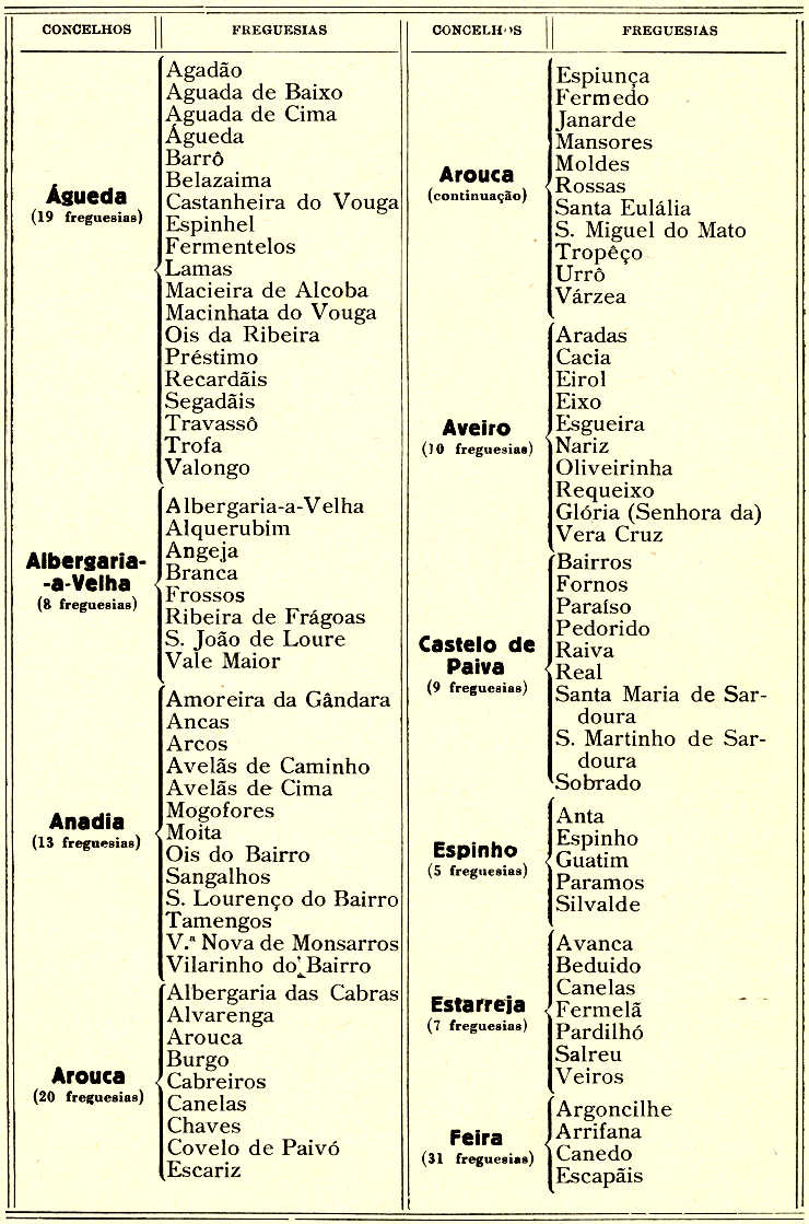 MAPA DOS CONCELHOS E FREGUESIAS DO DISTRITO DE AVEIRO