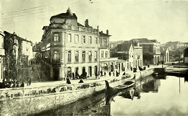 Parte da Ria aterrada no corrente ano (1935) para se fazer a concordância do alinhamento da Avenida com as pontes do centro da cidade e facilitar-se o trânsito.