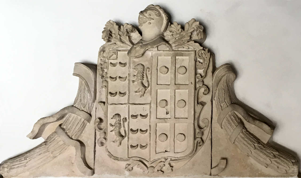Brasão de José Maria de Almeida Teixeira de Queirós, actualmente no Museu de Aveiro. Clicar na imagem para voltar ao texto.