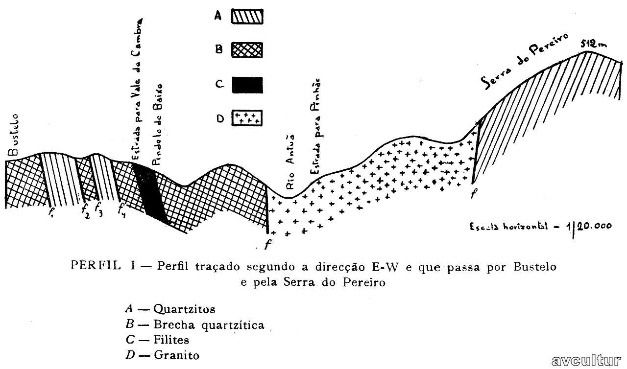 Estes factos parecem evidenciar as falhas (no perfil I estão marcadas pelas letras f2 e f3) que marcam o contacto das filites com os quartzitos.