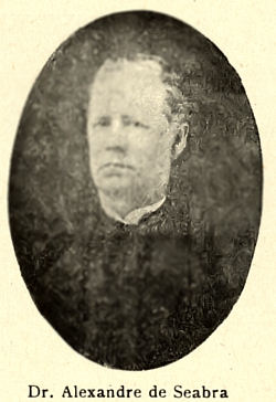 Escrita, aceite e agradecida a carta com muito prazer, parti à casa do Dr. Alexandre de Seabra que me recebeu no seu escritório. Entreguei-lhe a carta que, pausadamente, leu. fitando-me com serenidade, porte grave e austero. No seu todo, que me infundiu respeito, tive a noção de ter encontrado no Dr. Alexandre de Seabra um homem generoso, ilustre e ilustrado. E não me enganei. Deu-me uma carta de recomendação para o Reverendíssimo Bispo Conde.