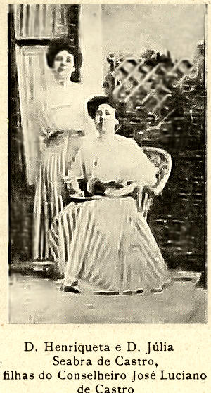 E nesta acção benemérita do Dr. Alexandre de Seabra e de sua virtuosa Esposa, tomaram parte a nobilíssima D. Maria Emília Seabra de Castro, dedicada Esposa do Conselheiro de Estado − José Luciano de Castro, e suas Excelentíssimas Filhas − D. Henriqueta Seabra de Castro e D. Júlia Seabra de Castro que, com raro sentimento de afecto para comigo, me dispensavam também carinhoso auxílio, mantendo assim as tradições da Casa Alexandre de Seabra, de Anadia.