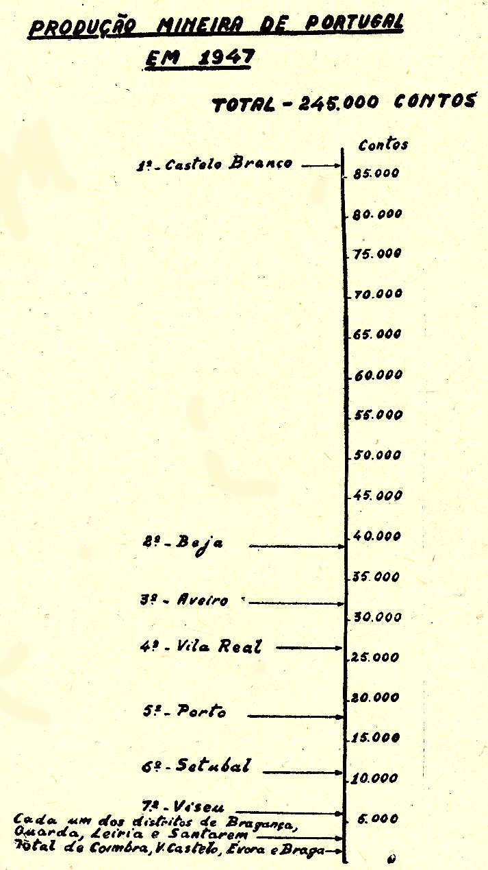 PRODUÇÃO mineira do nosso distrito, assim como a total portuguesa, é muito pequena; contudo, a primeira apresenta certa importância comparada com a